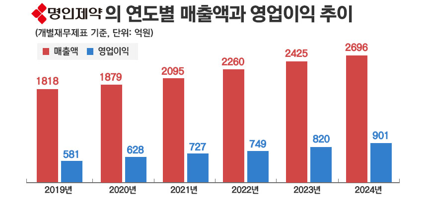 | 명인제약 | O | 2,696억 원 | 33.4% |