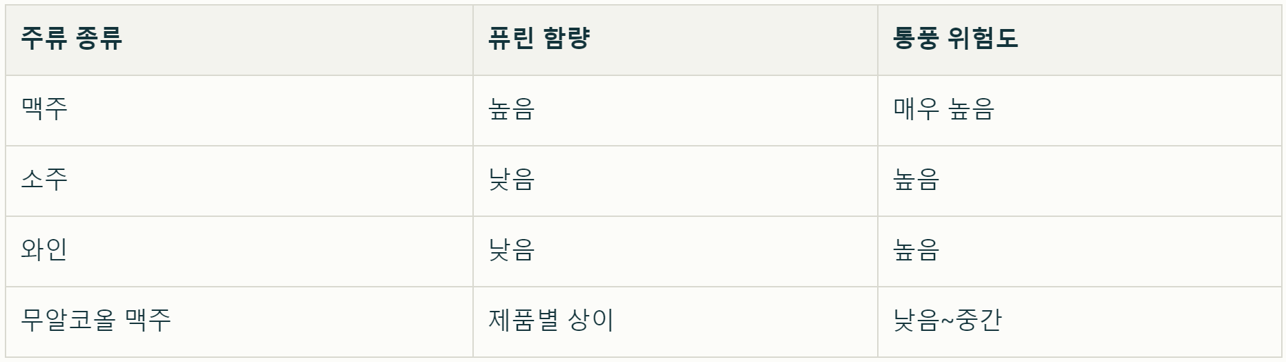 - 술자리에서는 무알코올, 무퓨린 음료 선택하기